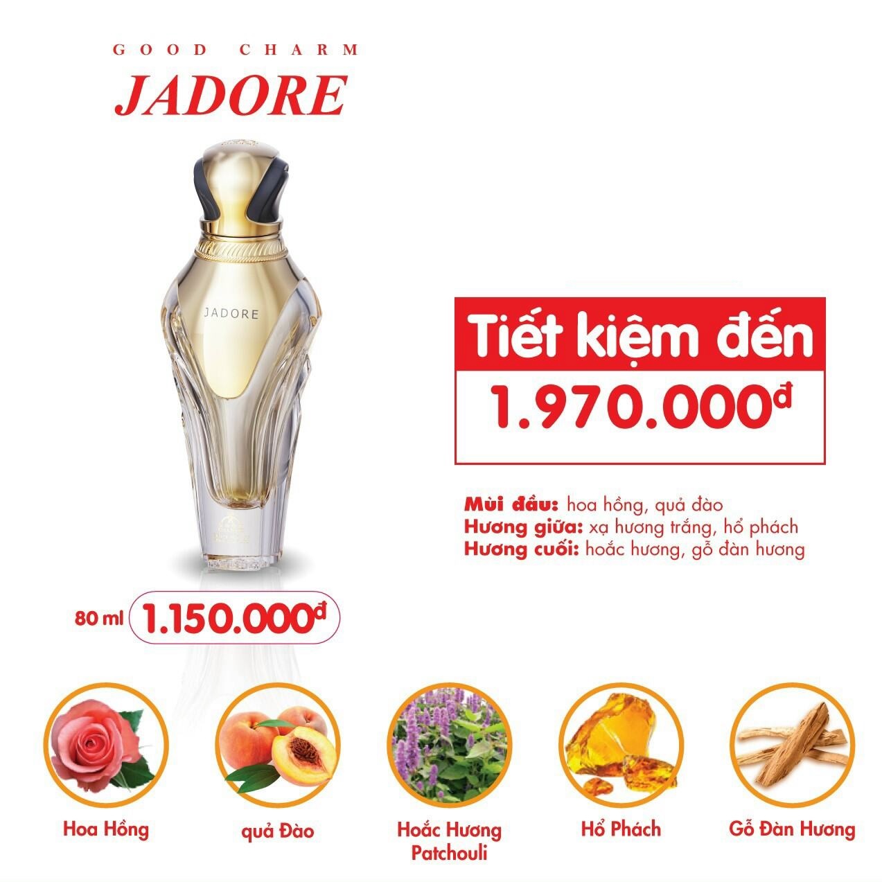 Hương nước hoa GoodCharme Jadore là biểu tượng của sự tinh tế và độ mạnh mẽ, là sự kết hợp tinh tế giữa sự dịu dàng và quyết liệt, sự nhẹ nhàng và tấn công mạnh mẽ, sự truyền thống và hiện đại tham vọng. Đây là mùi hương độc đáo dành cho phụ nữ tự tin, sẵn sàng đối mặt với mọi thách thức bằng chính sự mềm mại và nữ tính. Nước hoa Jadore thích hợp cho những người phụ nữ quyến rũ, nữ tính và thanh lịch, mang lại cảm giác dễ chịu và ngọt ngào mọi lúc trong ngày.